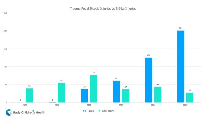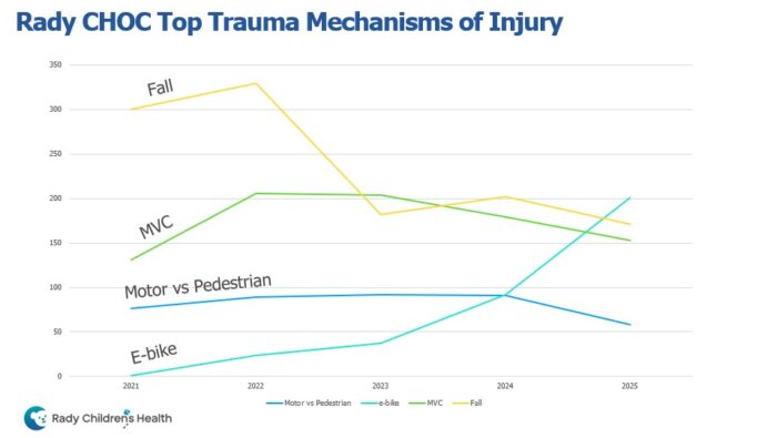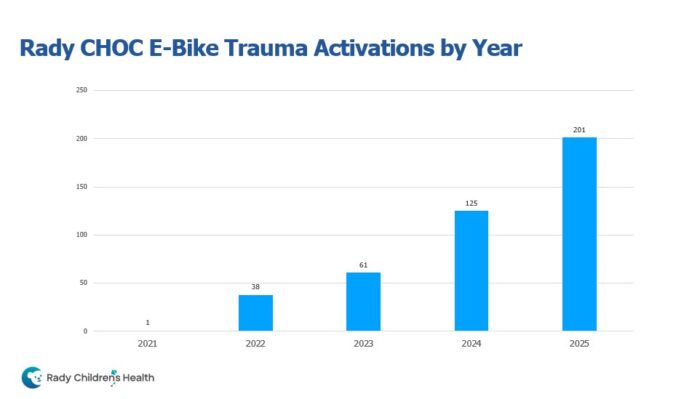 In 2025, e-bike injuries surpassed all of those to become the No. 1 reason for ED trauma visits at Rady Children’s.